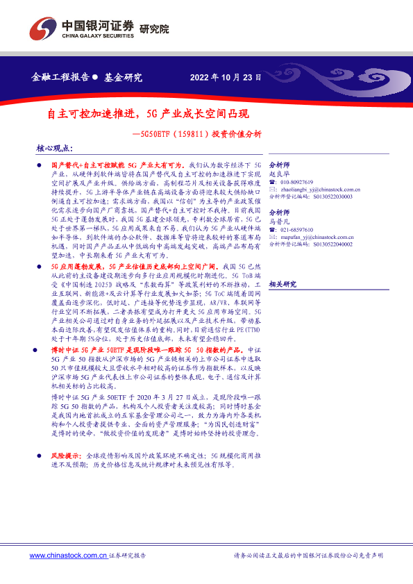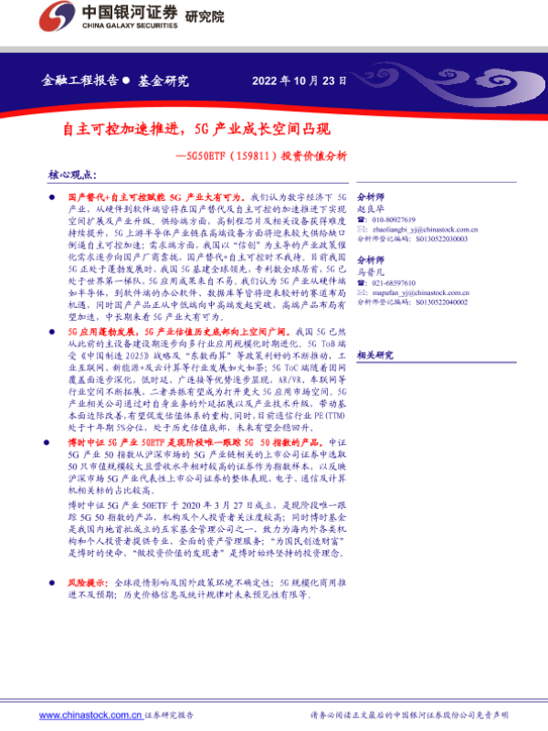 【银河证券】【20221023】5G50ETF(159811)投资价值分析:自主可控加速推进,5G产业成长空间凸现-25页
