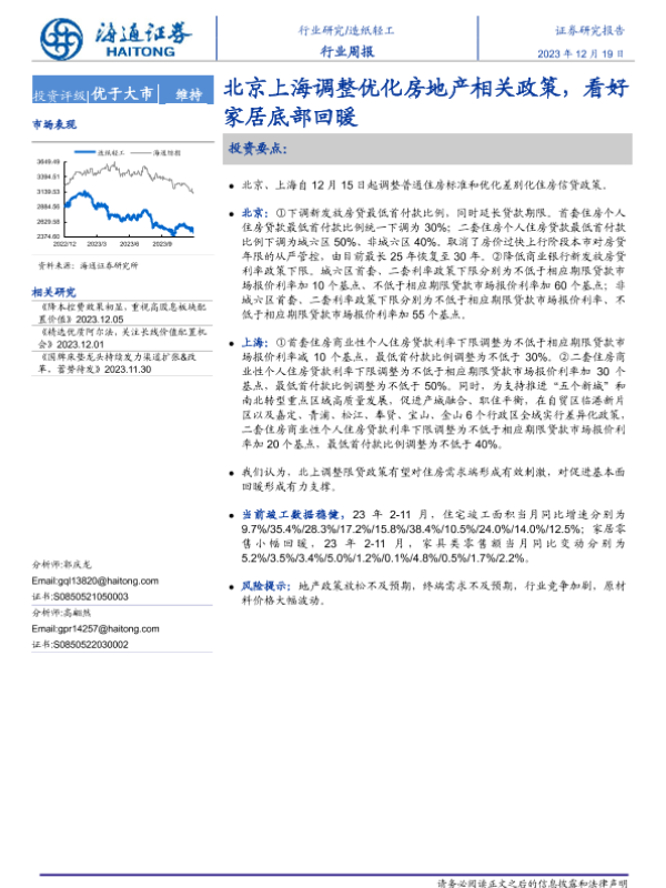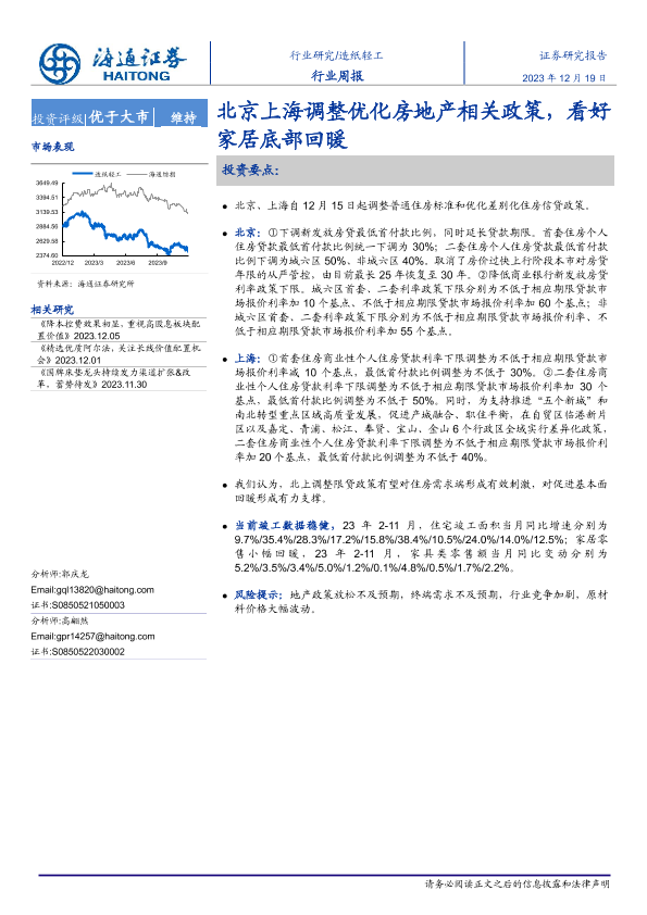 【海通证券】【20231219】20231219-海通证券-造纸轻工行业周报:北京上海调整优化房地产相关政策,看好家居底部回暖-11页