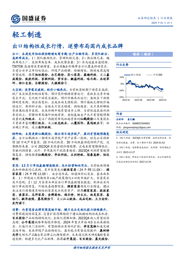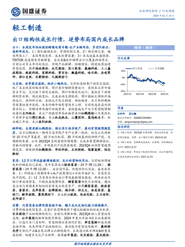 【国盛证券】【20240114】轻工制造行业周报:出口结构性成长行情,逆势布局国内成长品牌-45页
