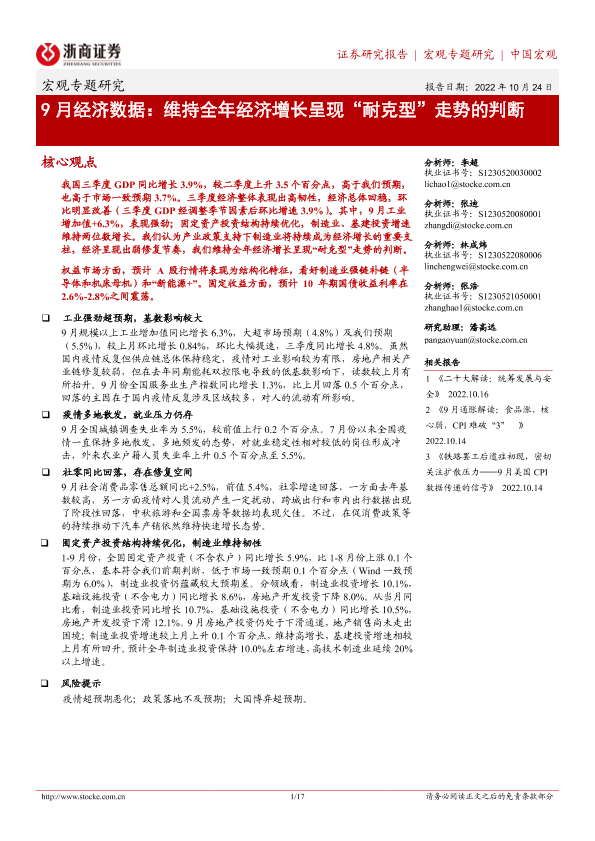 【浙商证券】【20221024】9月经济数据:维持全年经济增长呈现“耐克型”走势的判断-17页
