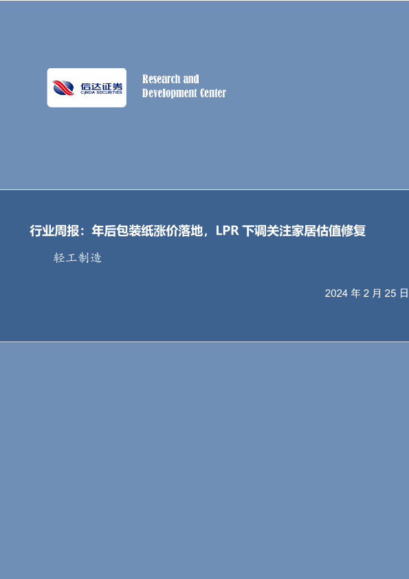 【信达证券】【20240225】20240225-信达证券-轻工制造行业周报:年后包装纸涨价落地,LPR下调关注家居估值修复-20页