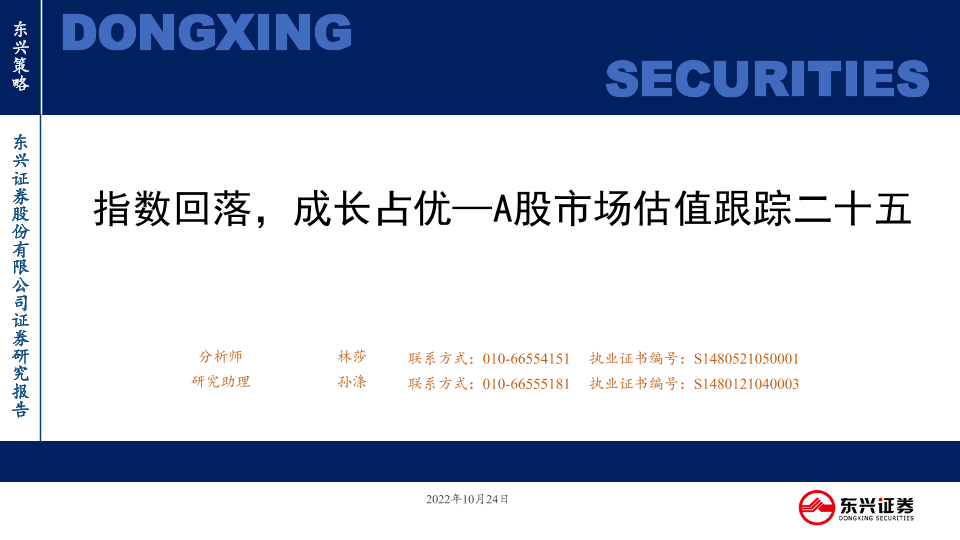 【东兴证券】【20221024】A股市场估值跟踪二十五:指数回落,成长占优-23页
