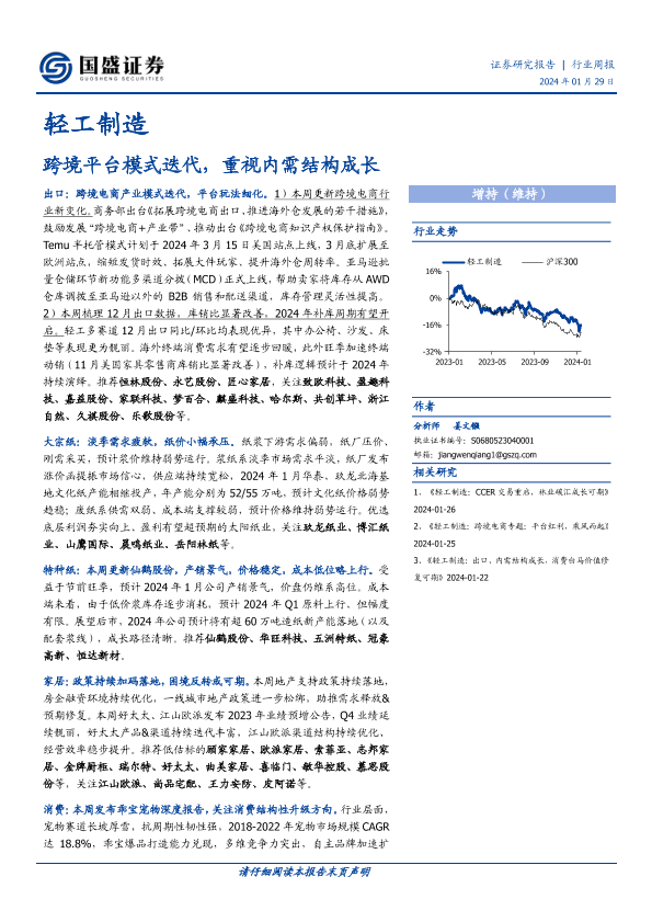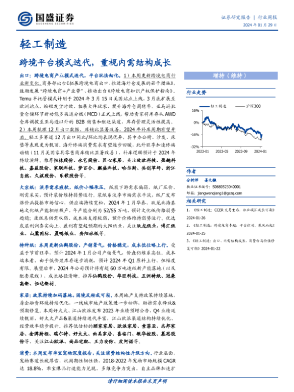【国盛证券】【20240129】轻工制造行业周报:跨境平台模式迭代,重视内需结构成长-48页