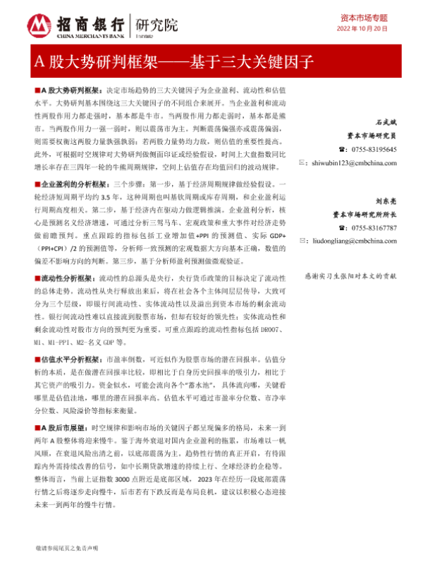 【招商银行】【20221020】A股大势研判框架:基于三大关键因子-19页