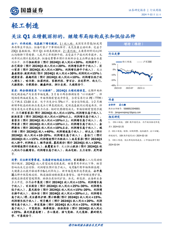 【国盛证券】【20240311】20240311-国盛证券-轻工制造行业周报:关注Q1业绩靓丽标的,继续布局结构成长和低估品种-40页