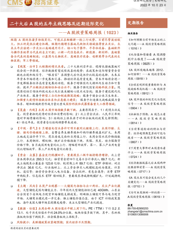 【海通证券】【20221023】A股投资策略周报:二十大后A股的五年主线思路及近期边际变化-22页