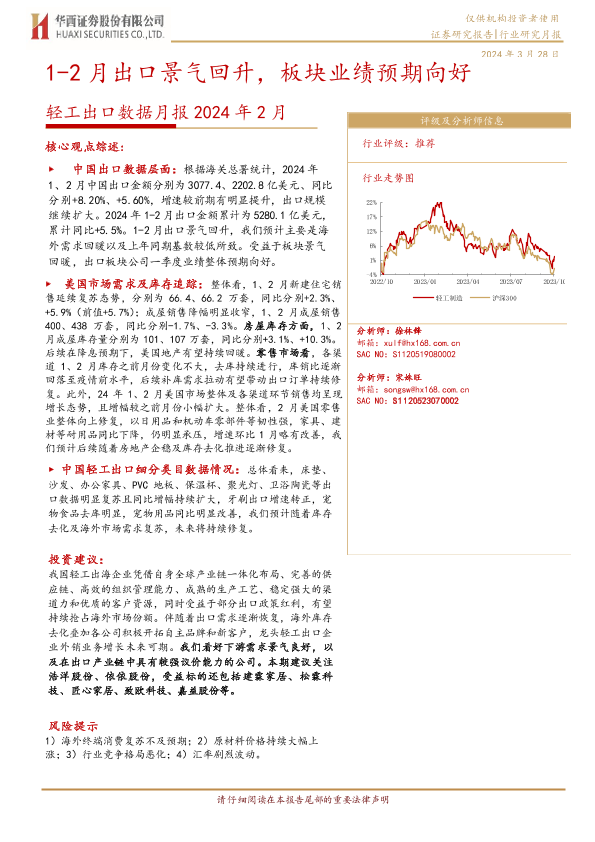 【华西证券】【20240328】2024年2月轻工出口数据月报:1-2月出口景气回升,板块业绩预期向好-14页