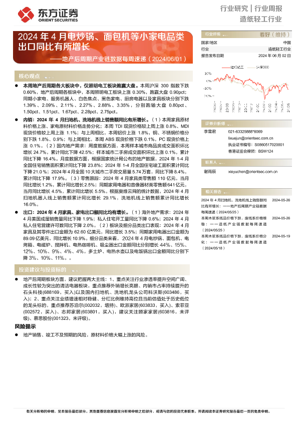 【东方证券】【20240602】2024年4月电炒锅、面包机等小家电品类出口同比有所增长-15页