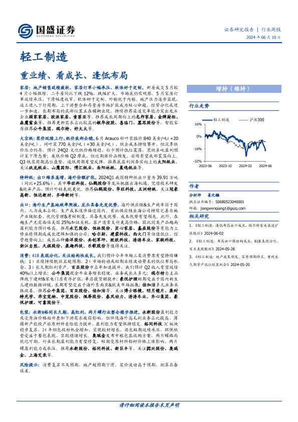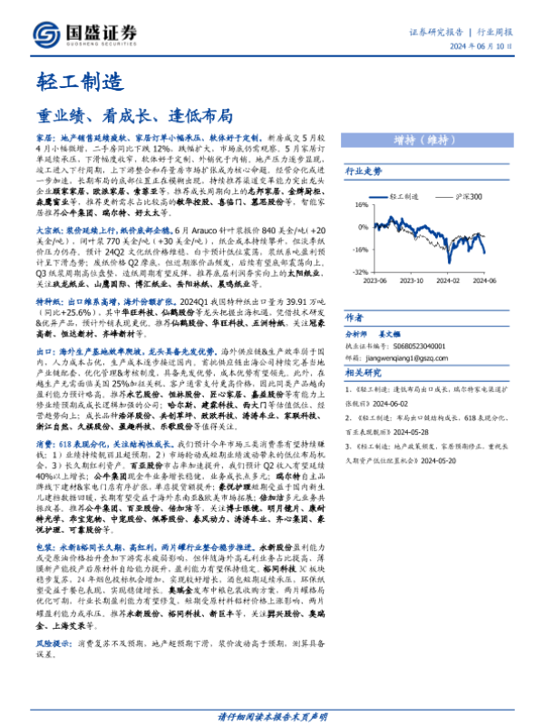 【国盛证券】【20240610】轻工制造行业周报:重业绩、看成长、逢低布局-39页