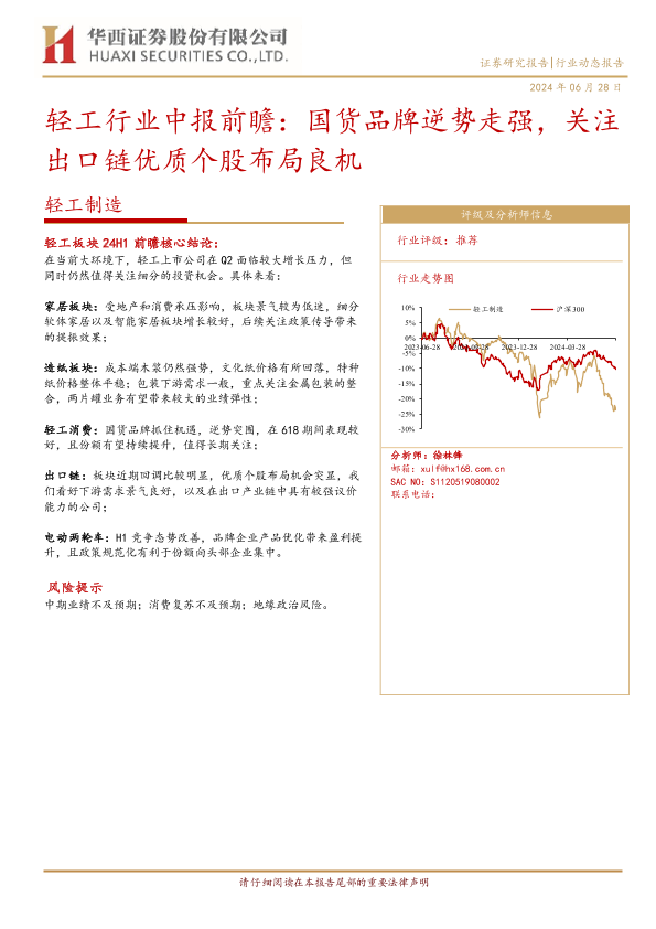 【华西证券】【20240628】20240628-华西证券-轻工行业中报前瞻:国货品牌逆势走强,关注出口链优质个股布局良机-10页