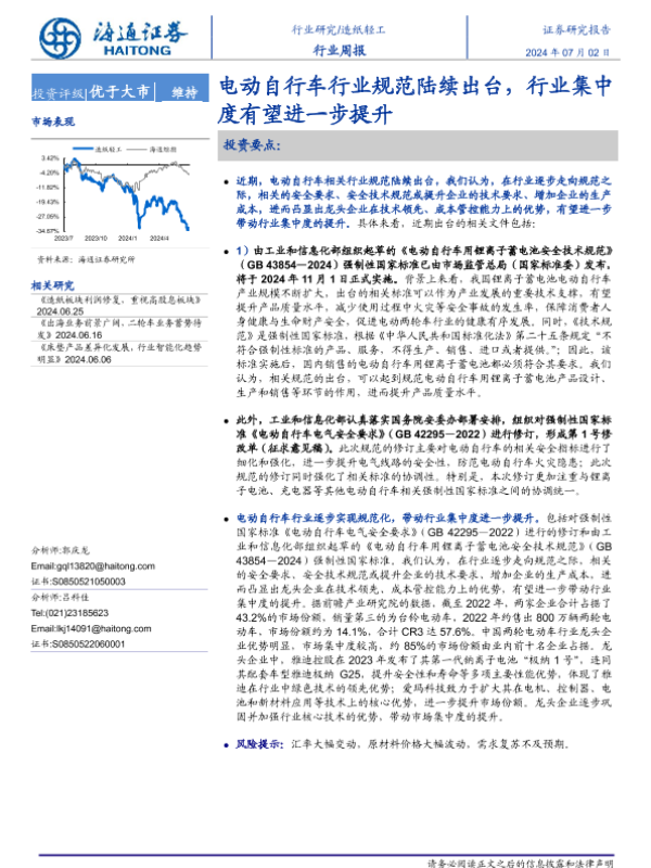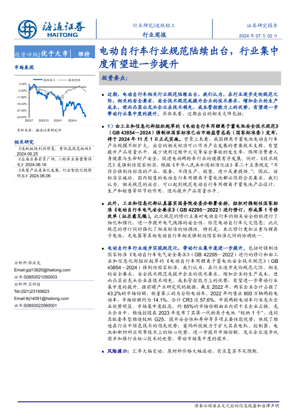 【海通证券】【20240702】20240702-海通证券-造纸轻工行业周报:电动自行车行业规范陆续出台,行业集中度有望进一步提升-11页