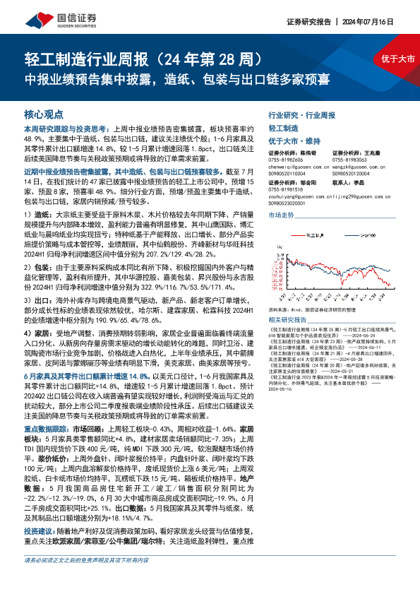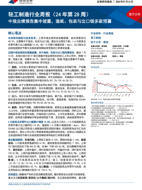 【国信证券】【20240716】20240716-国信证券-轻工制造行业周报(24年第28周):中报业绩预告集中披露,造纸、包装与出口链多家预喜-19页