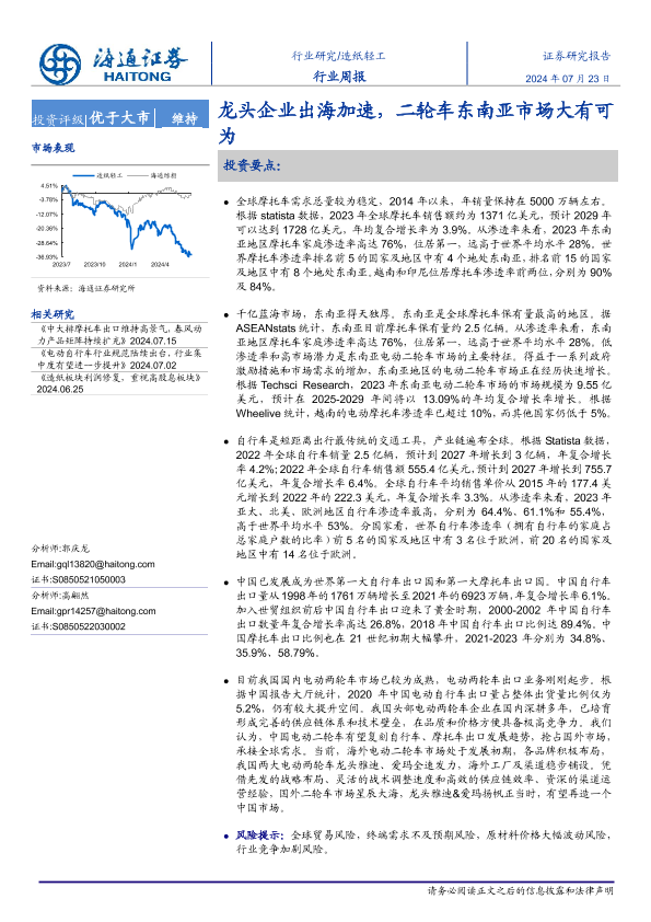 【海通证券】【20240723】20240723-海通证券-造纸轻工行业周报:龙头企业出海加速,二轮车东南亚市场大有可为-14页