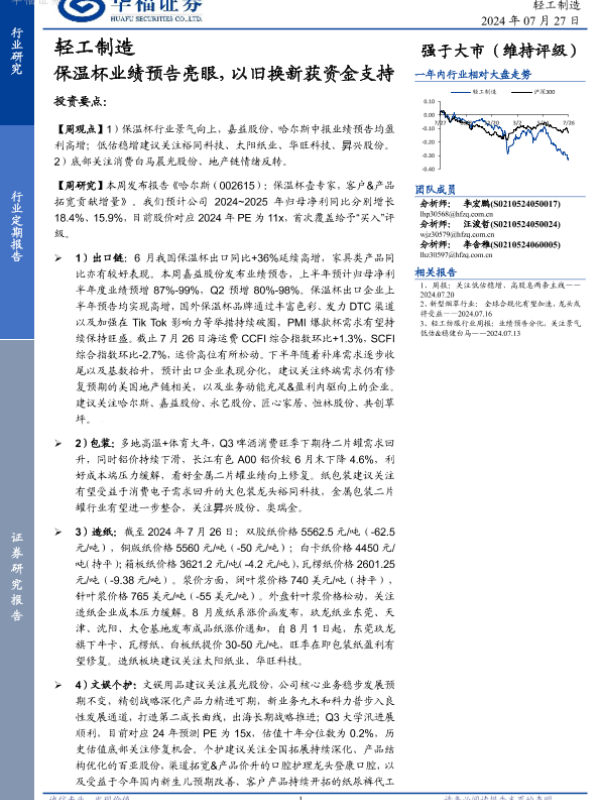 【华福证券】【20240727】20240727-华福证券-轻工制造行业定期报告:保温杯业绩预告亮眼,以旧换新获资金支持-21页