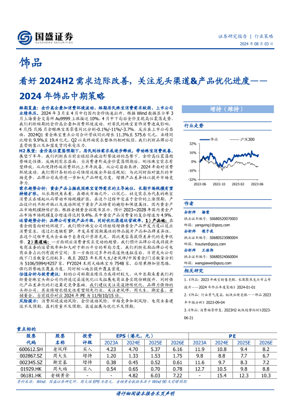 【国盛证券】【20240803】2024年饰品中期策略:看好2024H2需求边际改善,关注龙头渠道&产品优化进度-17页