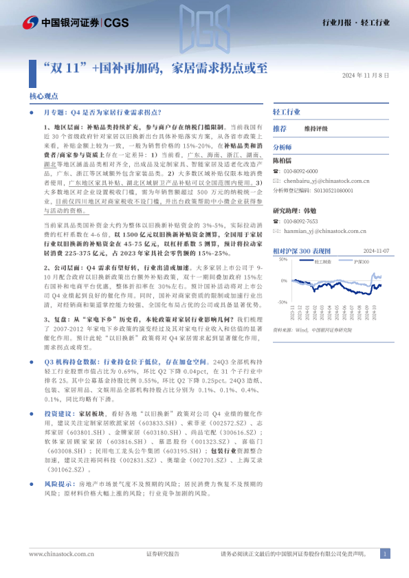 【银河证券】【20241108】20241108-中国银河-轻工行业行业月报:“双11”+国补再加码,家居需求有望修复-25页