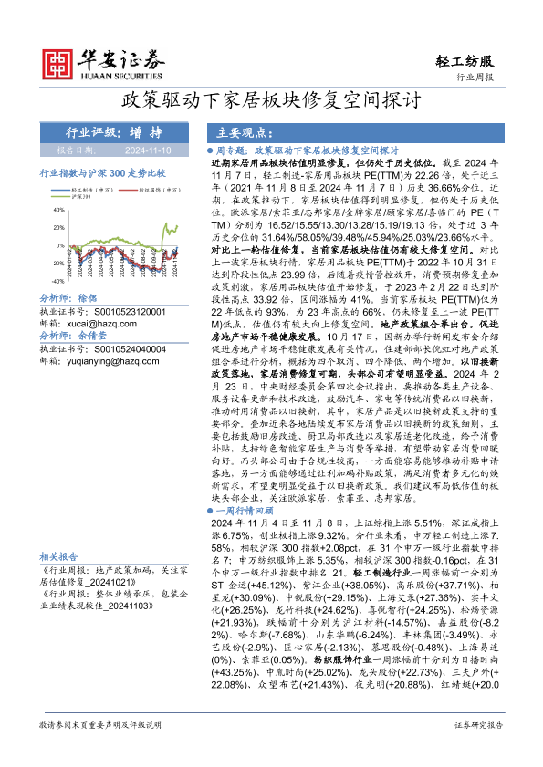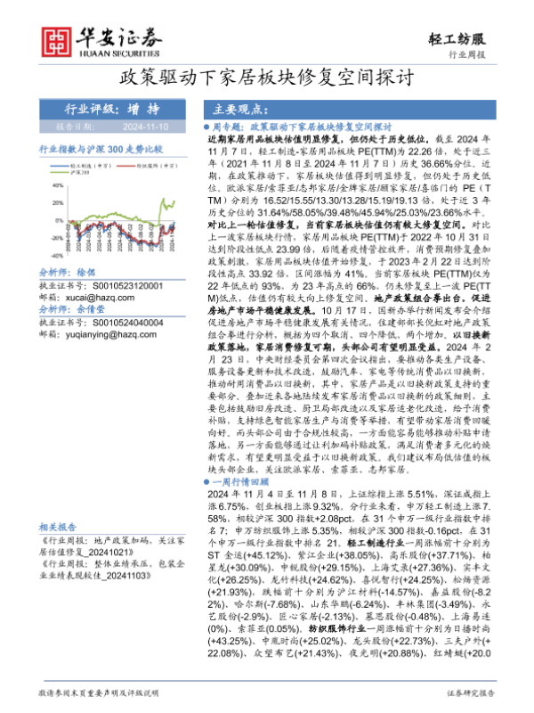 【华安证券】【20241110】轻工纺服行业周报:政策驱动下家居板块修复空间探讨-23页