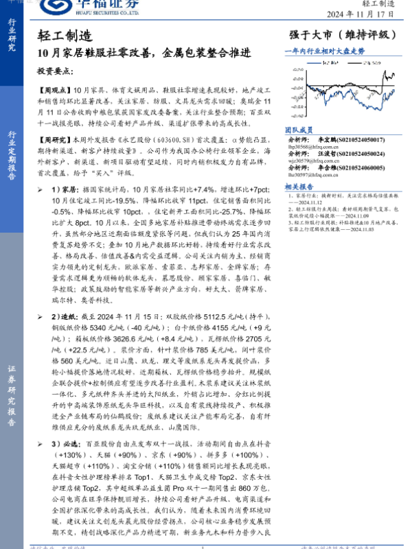 【华福证券】【20241117】轻工制造:10月家居鞋服社零改善,金属包装整合推进-20页