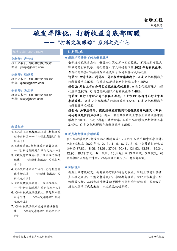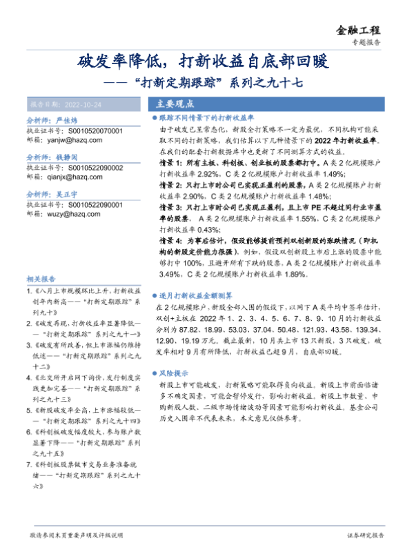 打新策略 新股上市 破发率 金融工程 打新收益率