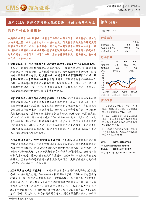 【海通证券】【20241216】20241216-招商证券-两轮车行业更新报告:展望2025:以旧换新与格局优化共振,看好龙头景气向上-18页