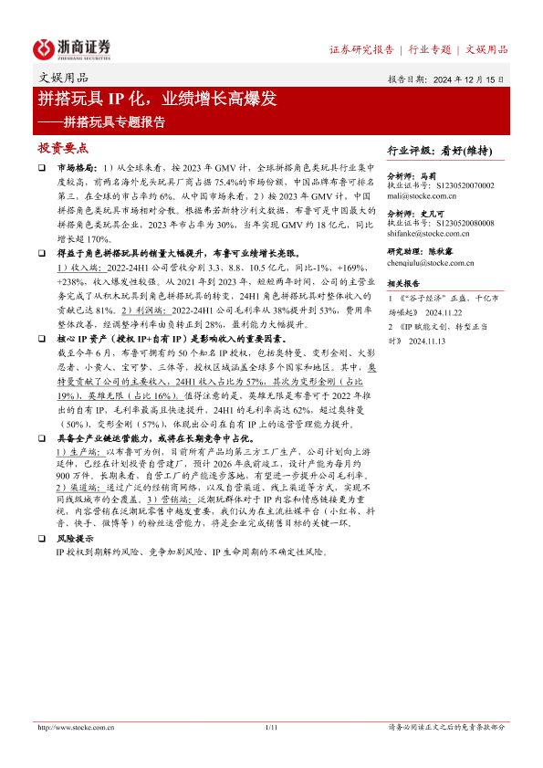 【浙商证券】【20241215】拼搭玩具专题报告:拼搭玩具IP化,业绩增长高爆发-11页