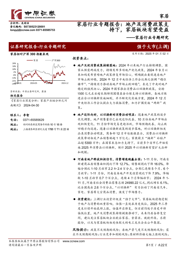 【中原证券】【20250102】家居行业专题报告:地产及消费政策支持下,家居板块有望受益-22页