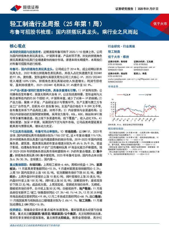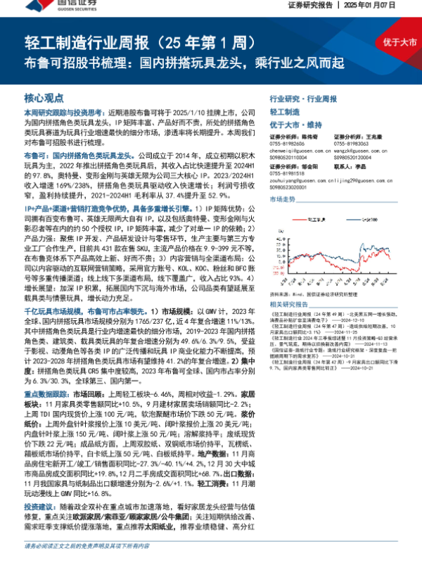 【国信证券】【20250107】轻工制造行业周报(25年第1周):布鲁可招股书梳理:国内拼搭玩具龙头,乘行业之风而起-29页
