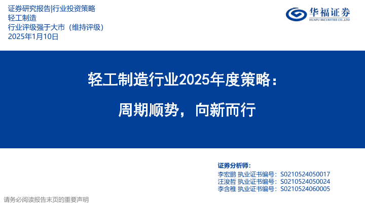【华福证券】【20250110】轻工制造行业2025年度策略:周期顺势,向新而行-53页