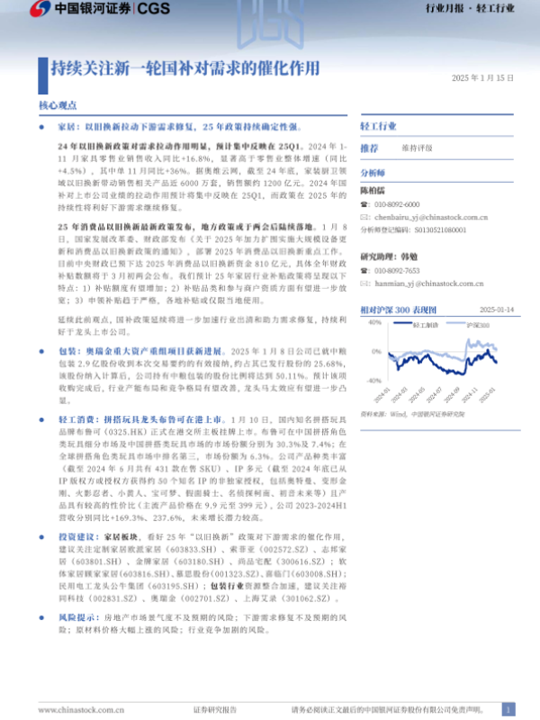 【银河证券】【20250115】20250115-中国银河-轻工行业行业月报:持续关注新一轮国补对需求的催化作用-18页