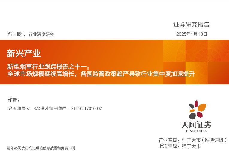 【天风证券】【20250118】新型烟草行业跟踪报告之十一:全球市场规模继续高增长,各国监管政策趋严导致行业集中度加速提升-21页