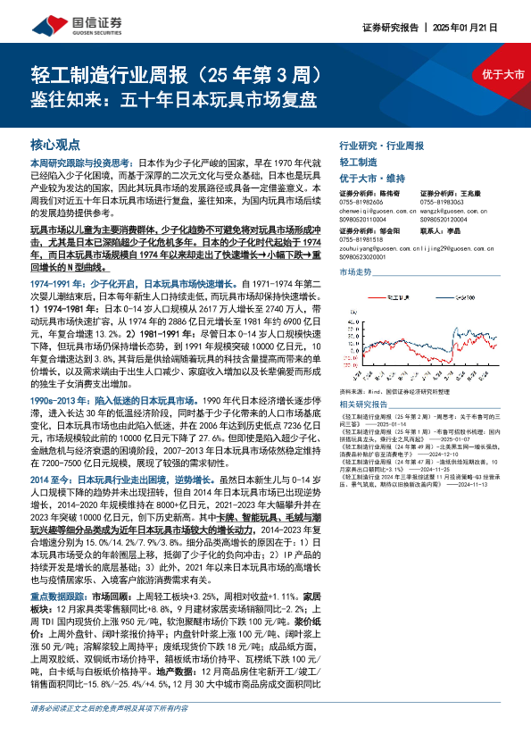 【国信证券】【20250121】轻工制造行业周报(25年第3周):鉴往知来:五十年日本玩具市场复盘-23页