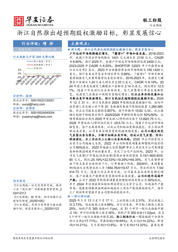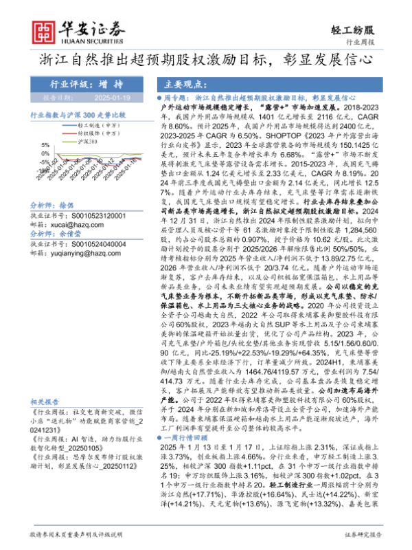 【华安证券】【20250119】轻工纺服行业周报:浙江自然推出超预期股权激励目标,彰显发展信心-22页