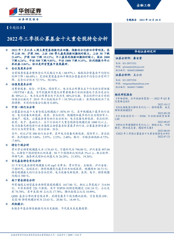 【华创证券】【20221028】2022年三季报公募基金十大重仓股持仓分析-27页