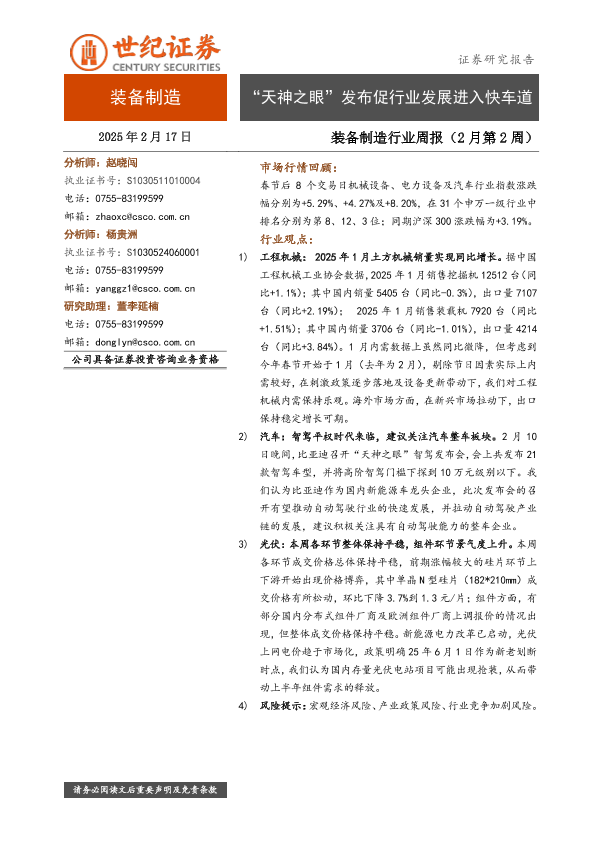【世纪证券】【20250217】20250217-世纪证券-装备制造行业周报(2月第2周):“天神之眼”发布促行业发展进入快车道-10页
