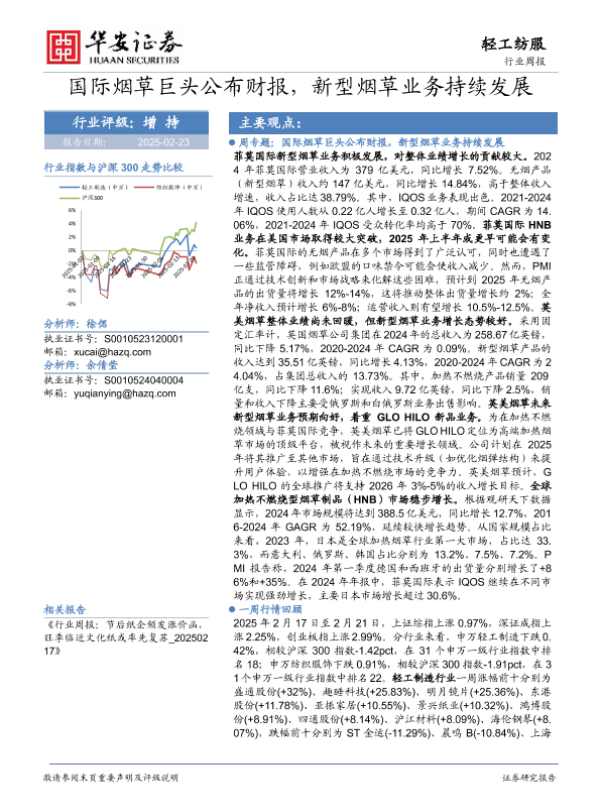 【华安证券】【20250223】20250223-华安证券-轻工纺服行业周报:国际烟草巨头公布财报,新型烟草业务持续发展-23页
