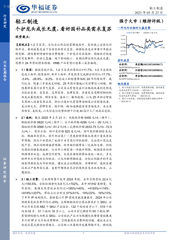 【华福证券】【20250323】轻工制造行业定期报告:个护龙头成长无虞,看好国补品类需求复苏-19页