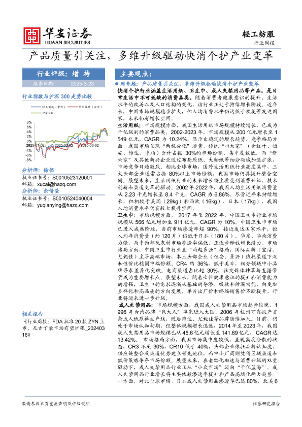 【华安证券】【20250323】20250323-华安证券-轻工纺服行业周报:产品质量引关注,多维升级驱动快消个护产业变革-25页