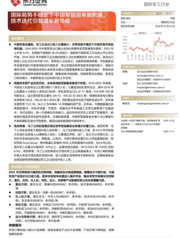 【东方证券】【20250307】国防军工行业深度报告:国际局势不稳定下中国军贸迎来新机遇,技术迭代引领增长新势能-42页