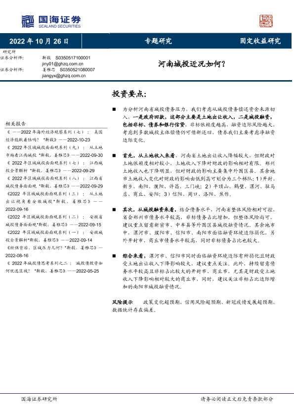 【国海证券】【20221026】专题研究:河南城投近况如何?-15页