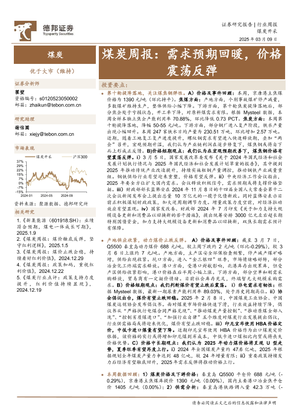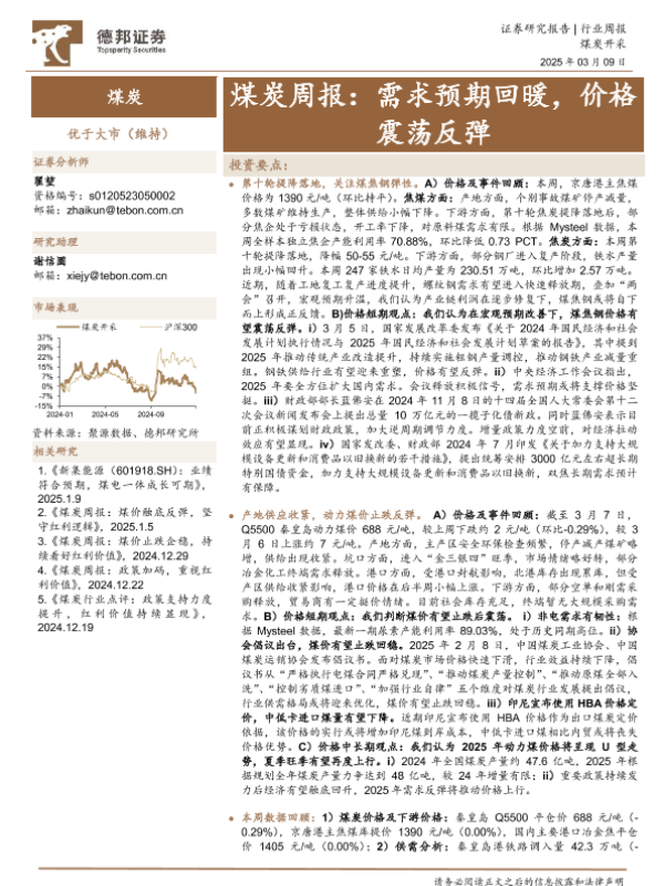 【德邦证券】【20250309】20250309-德邦证券-煤炭周报:需求预期回暖,价格震荡反弹-16页