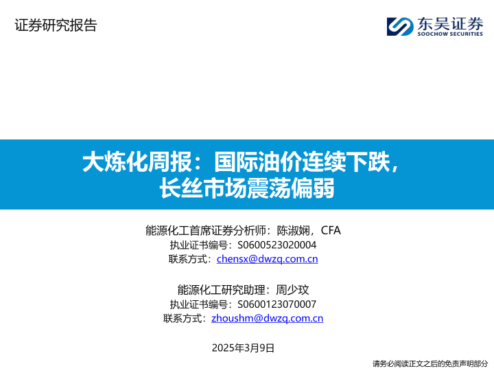 【东吴证券】【20250309】大炼化周报:国际油价连续下跌,长丝市场震荡偏弱-34页