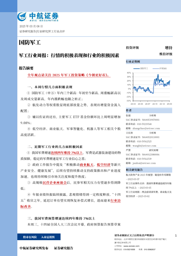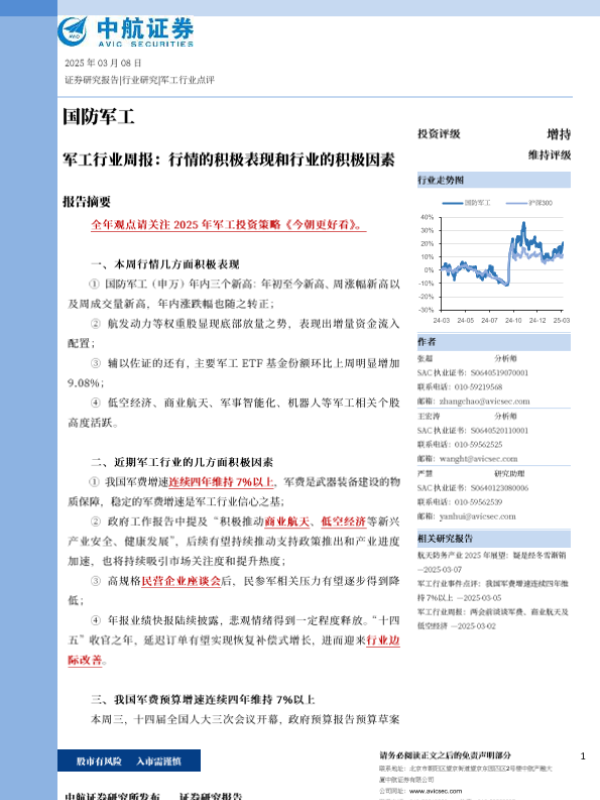 【中航证券】【20250308】军工行业周报:行情的积极表现和行业的积极因素-39页
