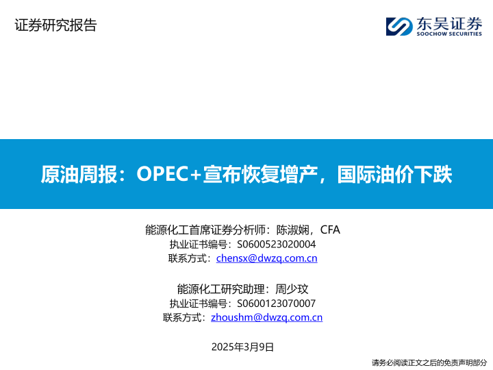 【东吴证券】【20250309】原油周报:OPEC+宣布恢复增产,国际油价下跌-56页