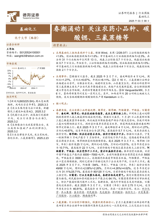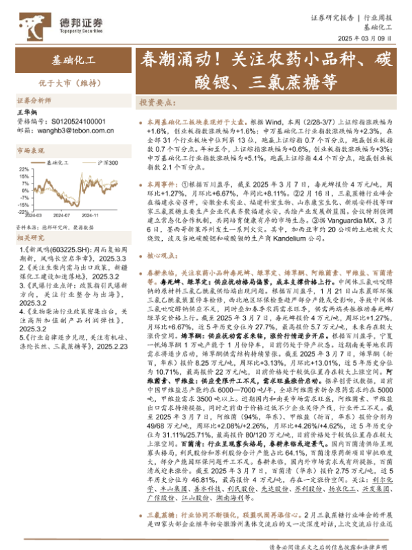 【德邦证券】【20250309】20250309-德邦证券-基础化工行业周报:春潮涌动!关注农药小品种、碳酸锶、三氯蔗糖等-43页