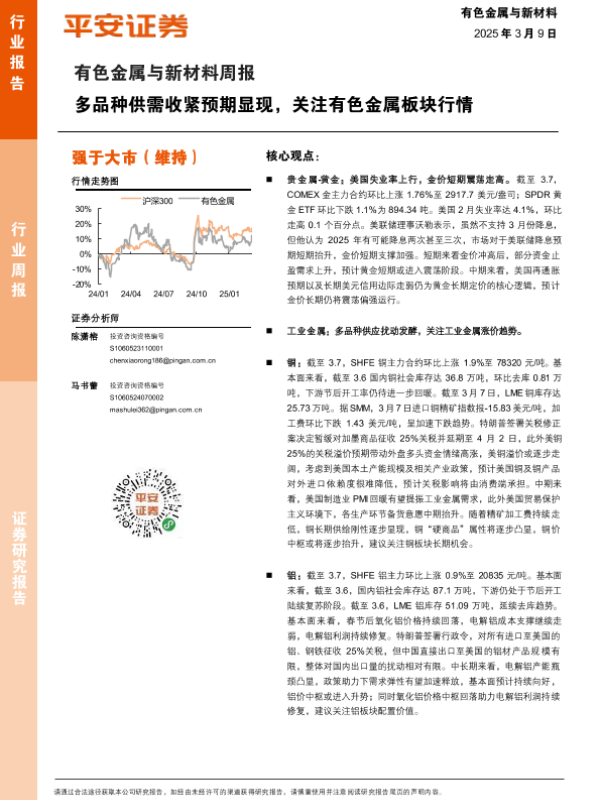 【平安证券】【20250309】20250309-平安证券-有色金属与新材料周报:多品种供需收紧预期显现,关注有色金属板块行情-12页
