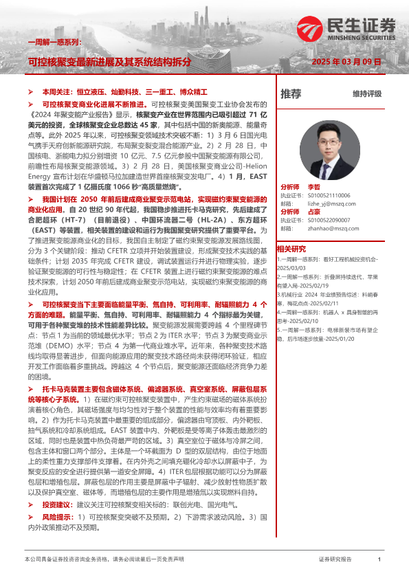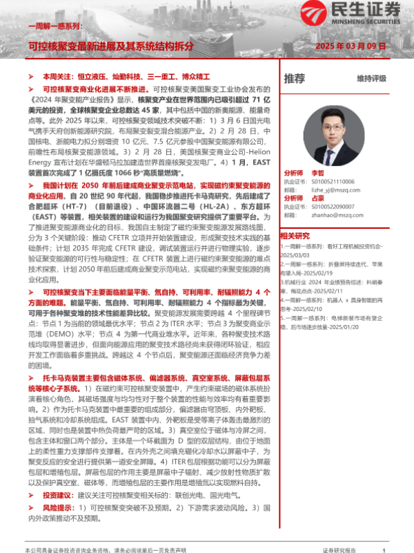 【民生证券】【20250309】机械一周解一惑系列:可控核聚变最新进展及其系统结构拆分-21页