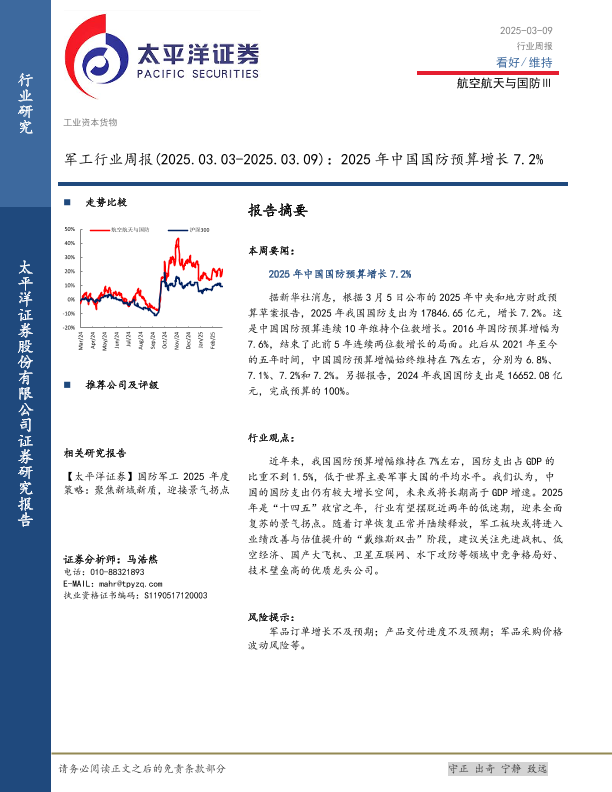 【太平洋证券】【20250309】2025年中国国防预算增长7.2%-11页