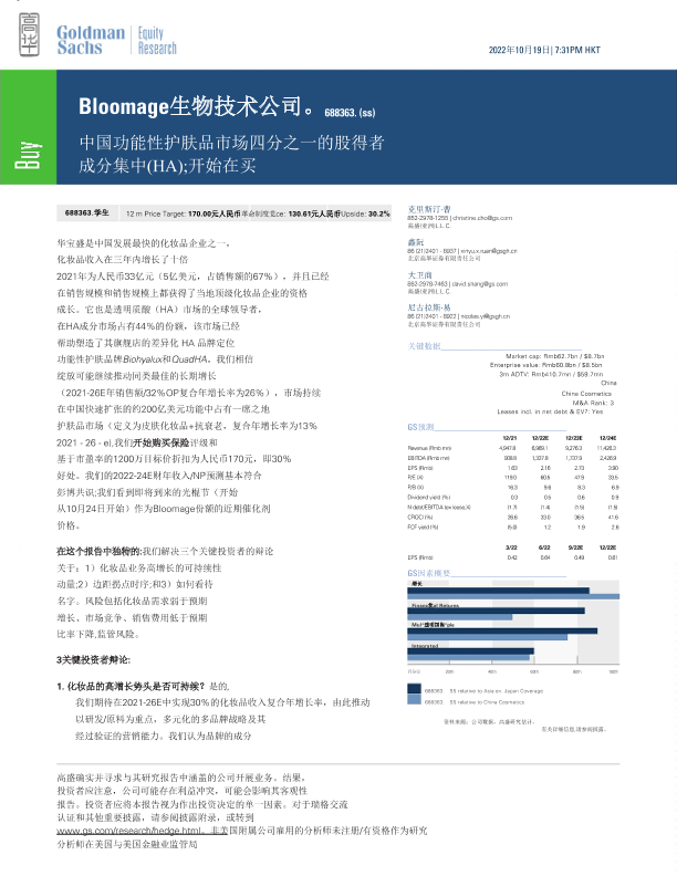 【Goldman Sachs】【20221019】中国功能性护肤品市场四分之一的股得者成分集中(HA);开始在买-30页