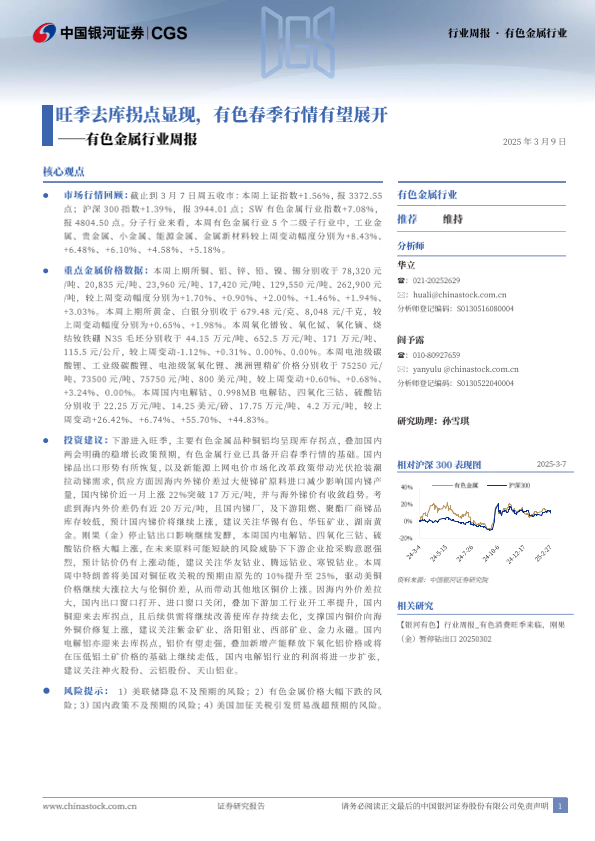 【银河证券】【20250309】20250309-中国银河-有色金属行业周报:旺季去库拐点显现,有色春季行情有望展开-20页