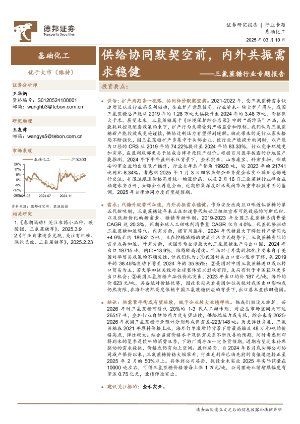 【德邦证券】【20250310】供给协同默契空前,内外共振需求稳健——三氯蔗糖行业专题报告-16页